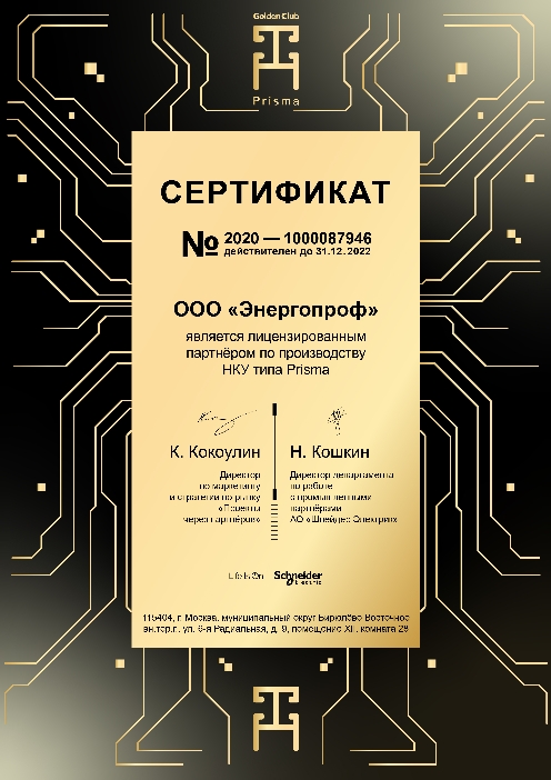 Получен сертификат официального партнера по производству НКУ Systeme electric